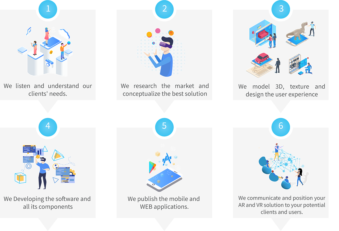 We are a company dedicated to create High-Tech solutions for Virtual Reality and Augmented Reality, we are experts on Mobile App, Oculus development, Holographic Modules and Web development, we help you to conceptualize your idea and make it happen, we like challenges and accept new ideas to achieve customer satisfaction.